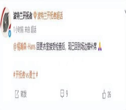 刚刚,杨瀚森本人发文回应:问题不大,谢谢大家关心。