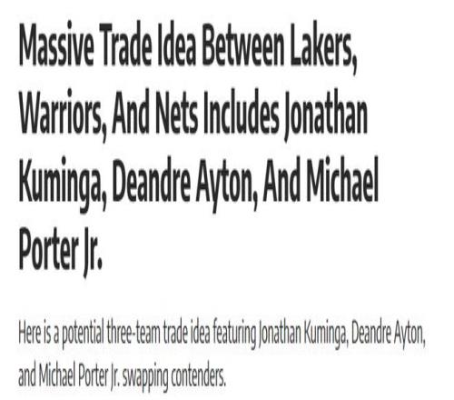 从账面实力来看,勇士是这笔交易的最大赢家,得到了交易中最具实力的小波特;篮网次之,收获了充足的未来资产和实用轮换;湖人虽然提升了阵容深度,但存在一定的不确定性。随着交易截止日的临近,三队的博弈将进入关键阶段,对此,大家怎么看呢?