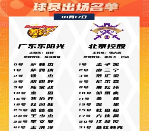 广东:奎因27分9板3助、胡明轩18分8板4助、萨林杰17分7板5助、萨姆纳15分4板4助、杜润旺6分、徐杰5分5助2断。北控:廖三宁25分7板5助2断、佩里20分14板、尼尔森18分2板4助2断、基兹林克13分3板、朱松玮12分。