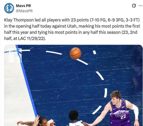 独行侠官方也专门晒图庆祝克莱连续两场比赛迎来里程碑,在本场总得分突破17000分大关之前,克莱在前一场对阵爵士队的比赛中,生涯三分命中率才超越利拉德升至NBA历史第四。