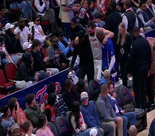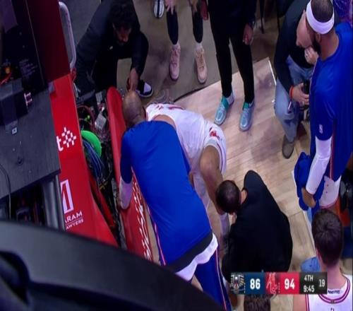 不要啊!亚当斯防守落地左腿受伤了起不来啊被搀扶回更衣室