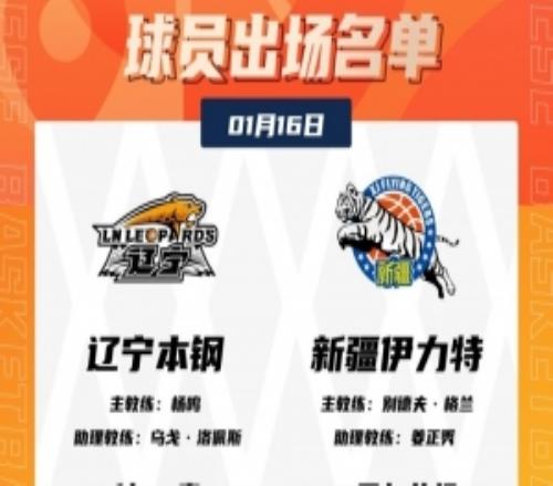 体育播报1月16日宣 今晚19:35,辽宁主场迎战新疆,赛前大名单出炉。辽宁:付豪、赵继伟、姜宇星、吴昌泽、李晓旭、...